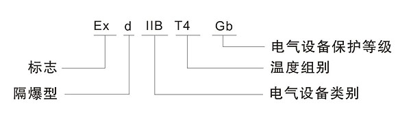 | YB2系列隔爆型三相异步电动机是YB型的改进设计,隔爆性能符合GB3836.1、 GB3836.2 《爆炸性气体环境用电电气设备》的规定,它分为矿用隔爆型(I类)适合于用甲垸场合,如矿井下固定式设备(非采掘工作面)和工厂用隔爆型(II类,如石油化工等含有爆炸性混合物场合) 做为一般转动动力。 本系列电机标有防爆标志为Exdl Mb、ExdllA T4 Gb、ExdHB T4 Gb等,其代表意义如下: